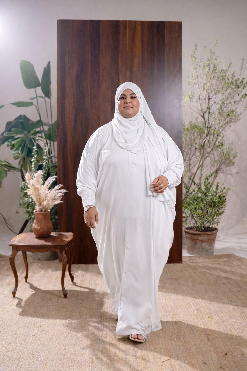 This abaya set features a loose-flowing silhouette that gives you maximum comfort without compromising on style. Crafted for Indian body types and climate, it feels light, breathable, and smooth on the skin — making it ideal for daily wear, travel, prayers, Umrah, and special occasions.