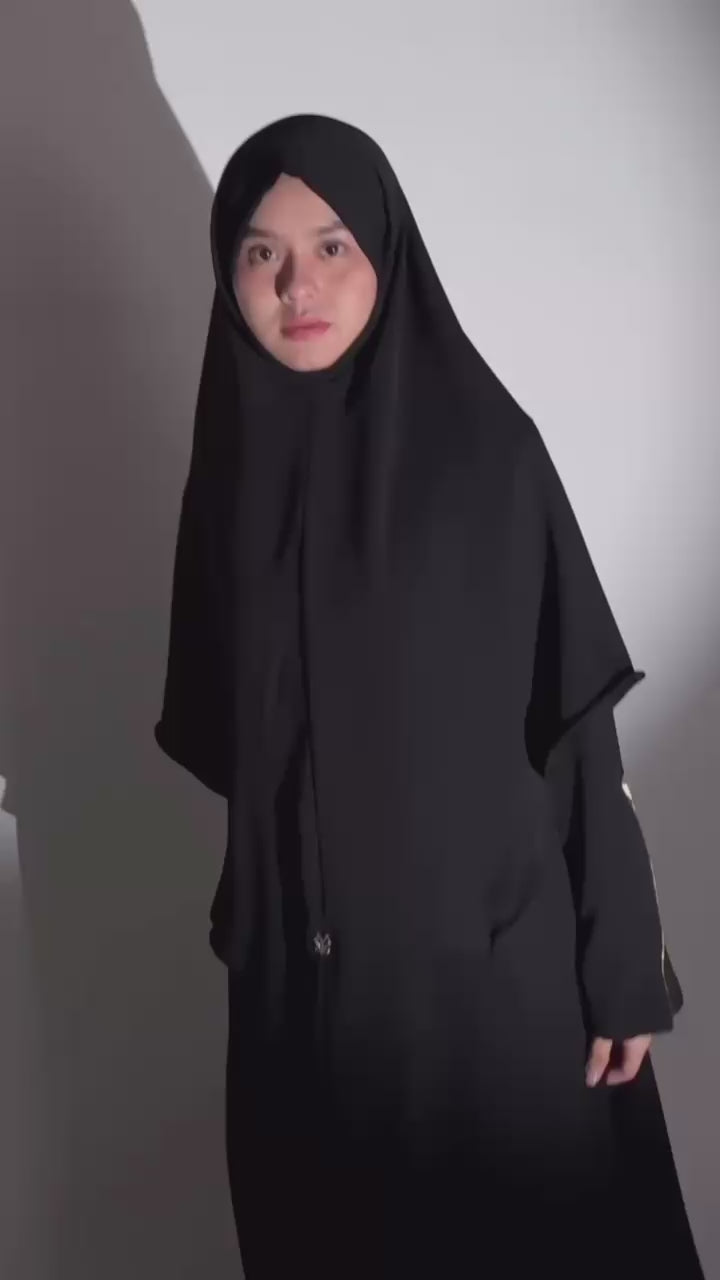 • Abaya: Flowy full-length abaya with elegant pleated sleeves and zipper detailing.