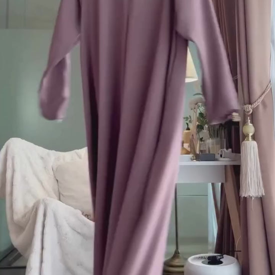 • Abaya: Flowy full-length abaya with elegant pleated sleeves and zipper detailing.
