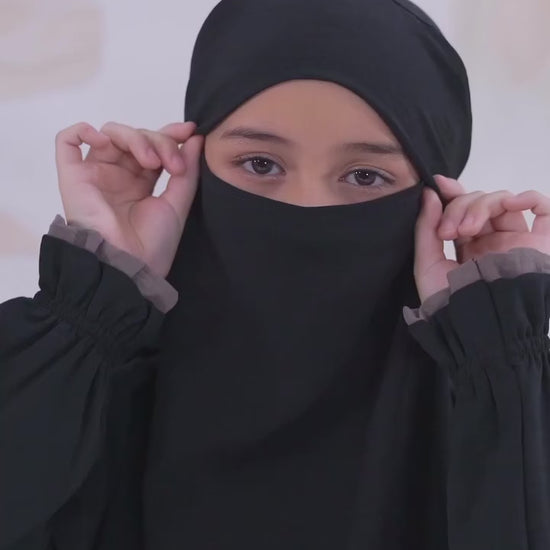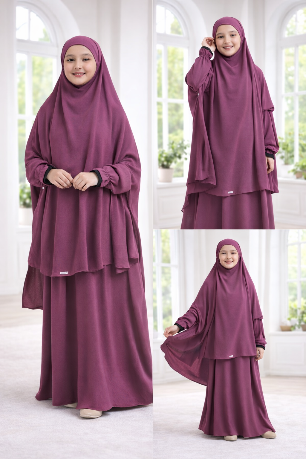 Give your child the perfect blend of comfort, modesty, and elegance with the Alizah Kids Abaya Set by Burkhawala.